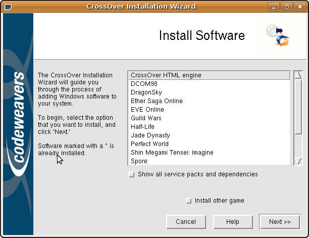 [muokkaa]Kuvakkaappaus CrossOver Installation Wizard ohjelmasta.