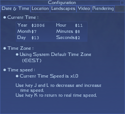 Tallenna sijaintiNämä asetukset riittävät pimennyksen havaitsemiseksi. Tarpeen mukaan voi olla hyvä valita ohjelmassa käytettäväksi maastoksi mahdollisimman vahan ympärillä oleva kasvillisuutta sisältävä teema. Tämän voi vaihtaa sopivaksi Landscapes -välilehdeltä.Tämän jälkeen asetusikkunan voi sulkea sen oikeasta yläkulmasta.