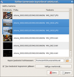 • Valitse kuvat jotka halutaan siirtää kameralta koneelle