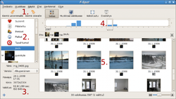 5. Kuvalistaus tai aktiivinen kuva - Tässä ruudussa esitetään työkalurivin valintojen mukaisesti listaus katsottavana olevista kuvista tai tietty yksittäinen kuva