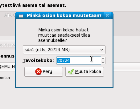 [muokkaa]Mikäli valittiin olemassaolevan osion koon muuttaminen, tehdään vielä seuraavat toimenpiteet: