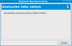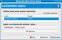[muokkaa]Fedorassa kaikki tarvittavat ohjelmat Bluetooth-yhteyden muodostamiseen ja hallintaan tietokoneelta puhelimeen saadaan asennettua komennolla