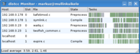 Distccmon näyttää työpöydällä graafisesti hajautetun käännöksen edistymisen. | |