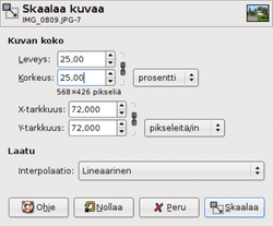 - Avautuneeseen ikkunaan syötetään kuvalle uusi koko