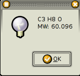 Avautuneessa ikkunassa ilmoitetaan molekyylin kaava.