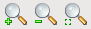 Ohjelman zoomauspainikkeet. Ensimmäinen suurennuslasi zoomaa lähemmäksi ja toinen kauemmaksi. Kolmannella voidaan valita tähdistöstä nelikulmion muotoinen alue johon halutaan tarkentaa.
