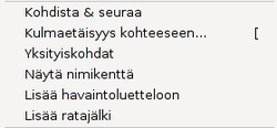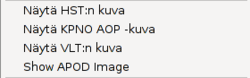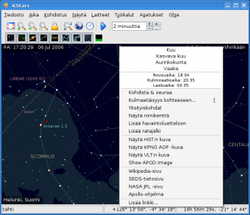 Taivaankappaleen tiedot saadaan esille napsauttamalla haluttua kappaletta hiiren kakkospainikkeella. Tällöin avautuvasta valikosta nähdään esimerkiksi seuraavia tietoja.
