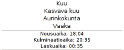 Valikon yläosiossa on taivaankappaleen nimi ja muita siihen liittyviä tietoja, kuten käyttäjän sijaintiin nähden olevat kappaleen nousu- ja laskuajat, jolloin kappale on taivaalla näkyvissä.