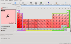 [muokkaa]Kalzium on työpöytäkäyttöön tarkoitettu jaksollinen järjestelmä. Ohjelma pitää sisällään perinteisen alkuainetaulukon ja lisäksi hyödyllistä tietoa eri alkuaineista. Taulukon väritystä voidaan muuttaa eri käyttötarkoitusten mukaan, kuten esimerkiksi ryhmien, lohkojen tai vaikka aineiden happamuuden ja emäksisyyden mukaan. Lisäksi taulukossa voidaan hyödyntää aikajanaa, jonka avulla eri aineiden löytymisvuosia on helppo havainnollistaa.