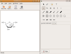 [muokkaa]GChemPaint on tarkoitettu helpottamaan kaksiulotteisten kemiallisten rakenteiden piirtämistä. Ohjelmaa voidaan käyttää esimerkiksi molekyylien rakennekuvien tekemiseen. GChemPaintilla piirrettyjä kohteita voidaan mm. tallentaa kuvamuodossa ja näin viedä esimerkiksi tekstinkäsittelyohjelmaan. Ohjelma voikin toimia apuna esimerkiksi koetehtäviä tai muita harjoituksia tehtäessä. GChemPaint sisältää muutamia valmiita molekyylejä joita voidaan lisätä työskentelytilaan valikosta valiten. Käyttäjä pystyy valmiiden mallien lisäksi saatavilla olevilla työkaluilla piirtämään vapaasti haluamiansa molekyylejä.