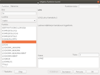 - Valitse Matemaattinen luokasta tuplanapsauttamalla luonnollisen logaritmin funktiota (LN)