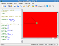 [muokkaa]Uuden ohjelman tekeminen aloitetaan yksinkertaisesti käynnistämällä Konna-ohjelma jonka jälkeen LOGO-kieltä voidaan alkaa suoraan kirjoittamaan Koodi-ikkunaan.