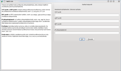 Sallitut palvelut, Naamiointi ja Broadcast on nekin enemmän palvelin/reititinkäyttöön. Niiden kuuluu työpöytäkoneessa näyttää kuten esimerkissä, poislukien Naamioi verkot-kohtaa.