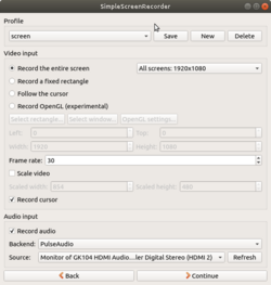 kuvakaappaus SimpleScreenRecorder ohjelmasta. | |