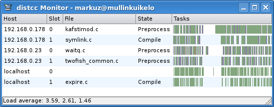 Distccmon-gnome-ohjelma monitoroi Distcc-käännöstä.