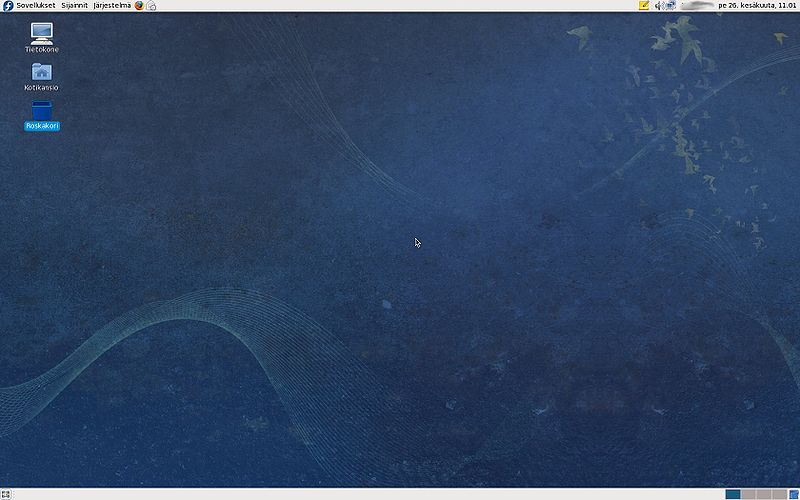 Kuvankaappaus suomenkielisestä Fedora 11:n työpöydästä.