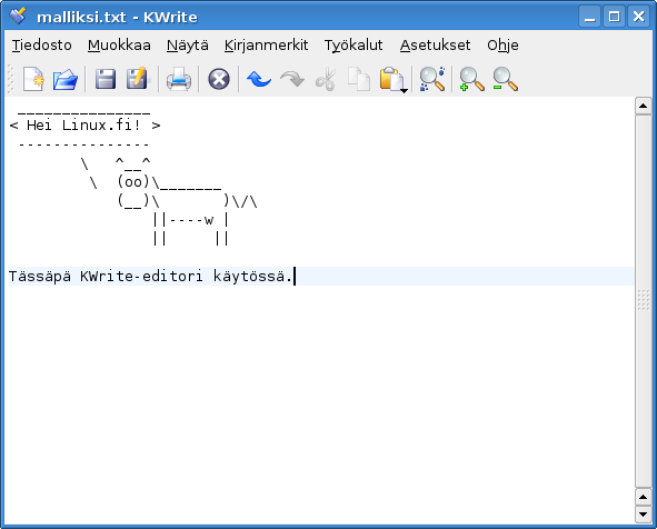KDE:n KWrite-kuvankaappaus KDE tutuksi -artikkelia varten.