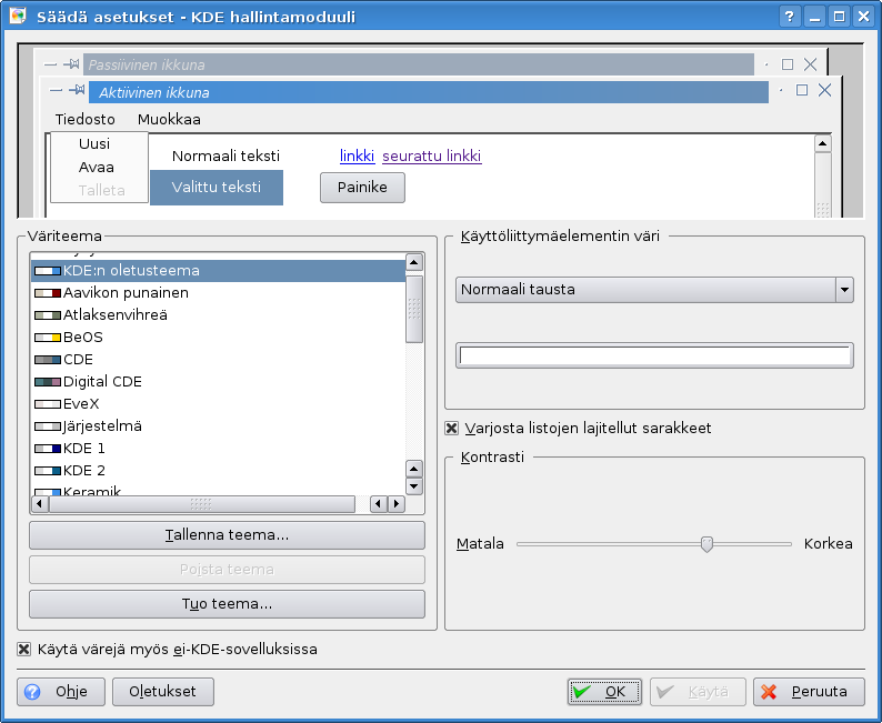 KDE:n väriasetusdialogi KDE tutuksi -artikkelia varten.