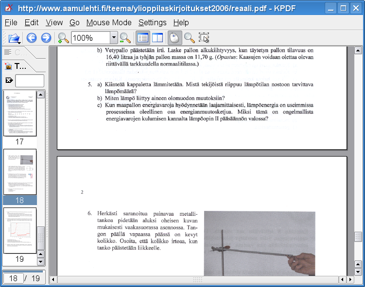 Kpdf näyttämässä kevään 2006 YO-kirjoitusten tehtäviä. Wikin lisenssin alainen.