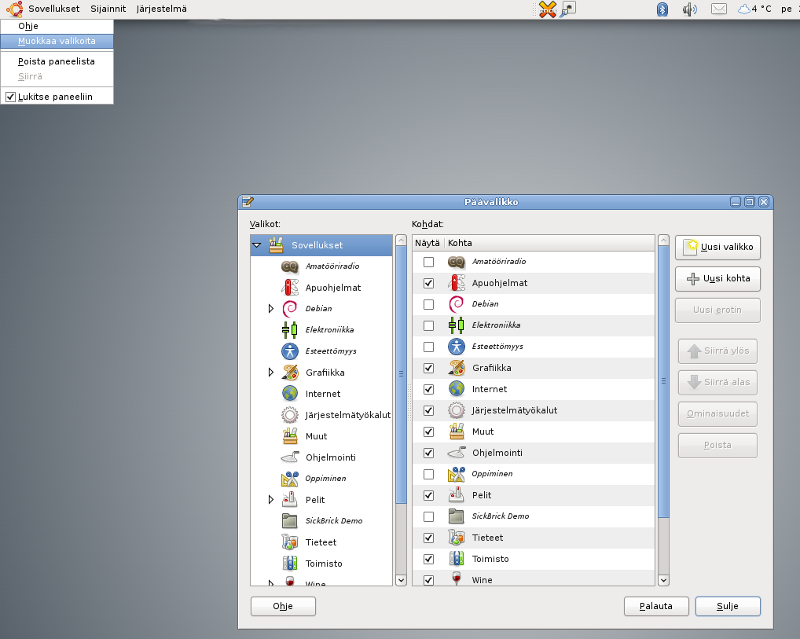 [muokkaa]Muokkaa valikoita Ubuntu 10.04 jakelussa.