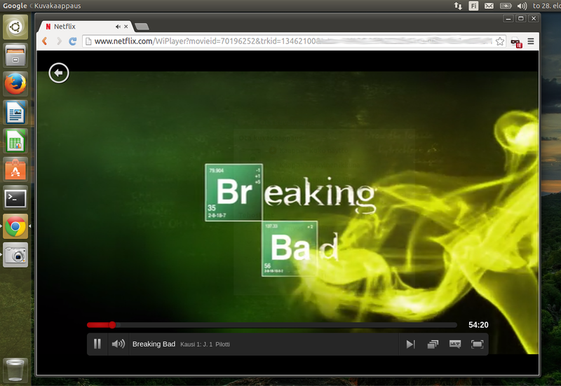 | nykyinen | 28. elokuuta 2014 kello 15.03 | 1 162 × 800 (600 KiB) | Kuhkuli (keskustelu | muokkaukset) | Google Chrome 37 (beta) toistaa Breaking Bad -tv-sarjaa html5 -soittimella Netflixissä. |