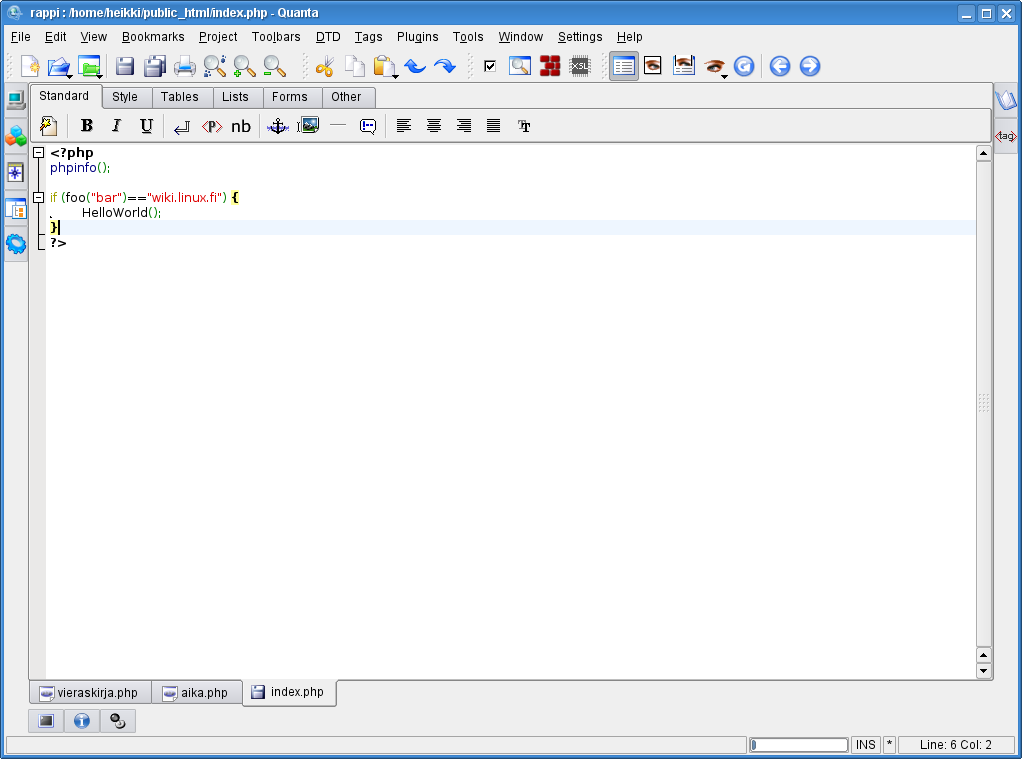 PHP-koodausta Quantalla. Wikin lisenssin alainen.