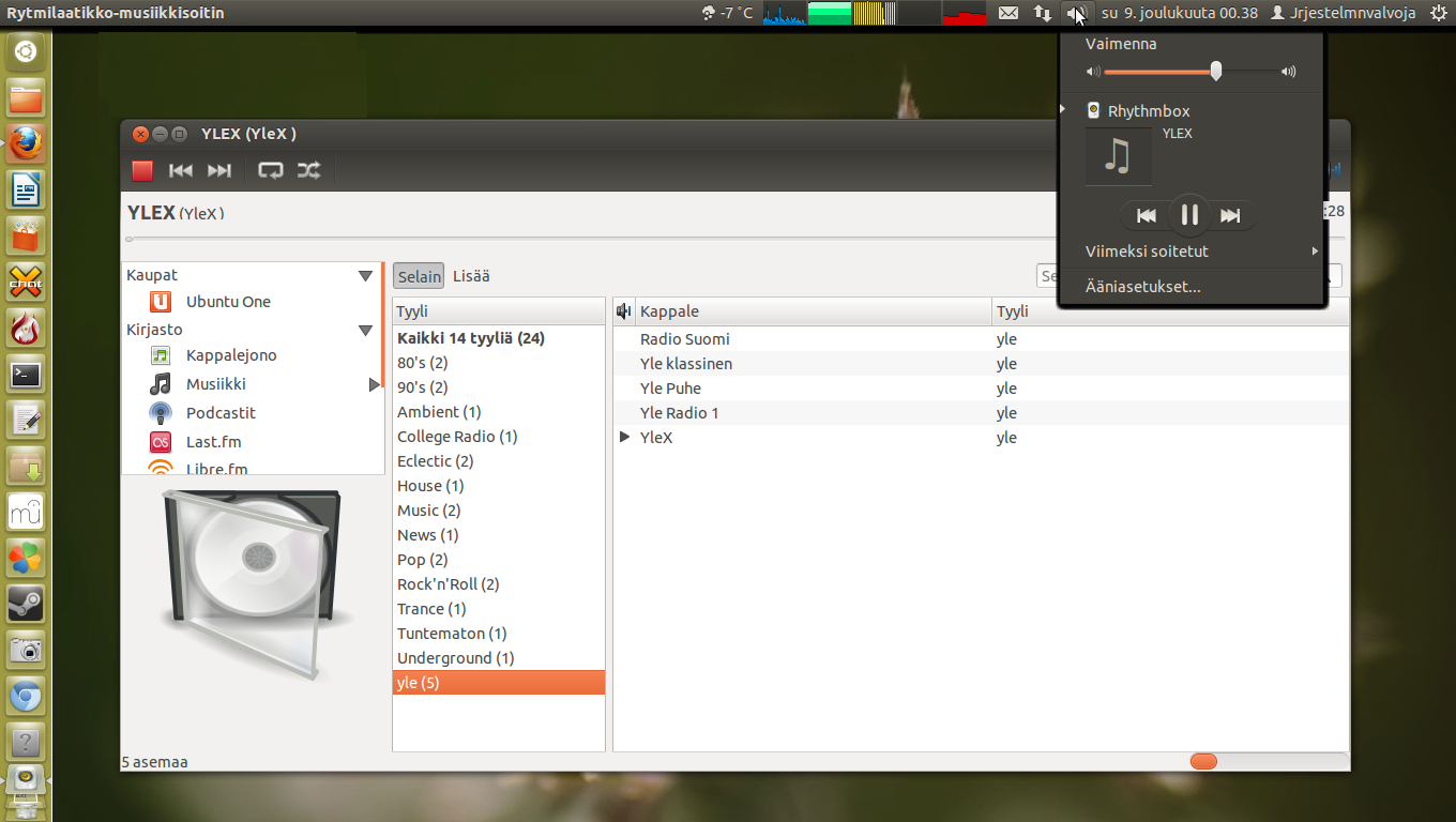 | nykyinen | 9. joulukuuta 2012 kello 01.43 | 1 360 × 768 (239 KiB) | Lahtis (keskustelu | muokkaukset) | Rhythmbox Ubuntu 12.04 versiossa. Rhythmbox versio 2.96. Internet radiokanava auki, sekä yläpaneeli. | |