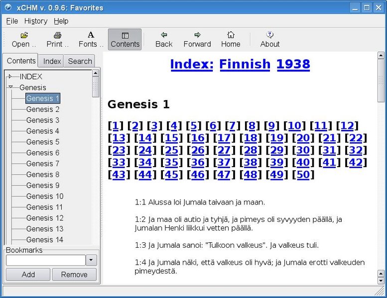 xCHM toiminnassa. Wikin lisenssin alainen.