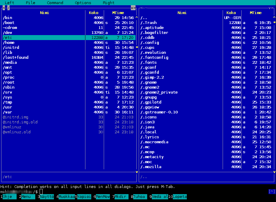 | 7. lokakuuta 2007 kello 17.52 | MidnightCommander.png (tiedosto) | 2,5 MiB | Korkeatarkkuuksisempi versio aikaisemmin ottamastani kuvasta. Tätäkin saa käyttää aivan vapaasti | 1 | |