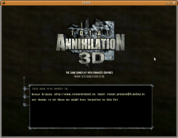 Total Annihilation 3D on porttaus eli käännös Total Annihilation pelistä, jonka julkaisi Chris Taylor ja Cavedog-yhtiö vuonna 1997. Pelin lähdekoodit ovat vapaassa levityksessä. Peli on taistelu- sekä strategiapeli. Pelin idea on koota tarpeeksi energiaa ja metalleja, jotta voisi rakentaa riittävän hyviä yksiköitä ja tuhota niiden avulla vihollisen. Pelissä on neljä/viisi yksikköluokkaa joita ovat kävelevät mechat eli kbotit, ajoneuvot, laivat, lentokoneet ja ilmatyynyalukset. Peliä voi pelata yksinpelinä tietokonetta vastaan (kampanjat) tai moninpelinä. Peli vaatii alkuperäiset cd-levyt, joiden mukana tulevat kampanjat, yksiköt ja kentät. Pelistä on saatavana Linux, Windows ja Mac os X versiot, sekä paljon erilaisia modeja.