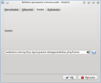 [muokkaa]Esimerkiksi palveluna hankitun eGroupwaren kotihakemiston voi liittää käyttäen Dolphinia. Hiiren oikealla näppäimellä luodaan: